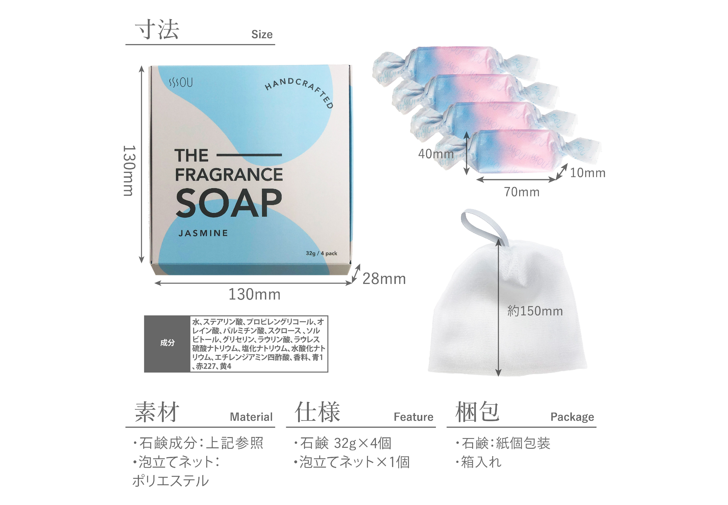 セットで箱入れが可能ですので、販売品やギフトなどの用途に最適です。