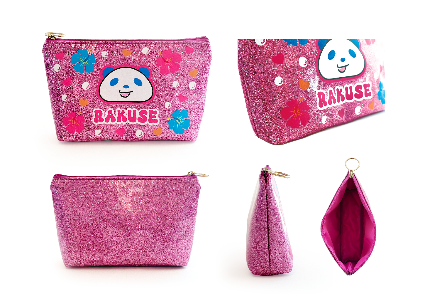 合皮、ポリエステル素材のキラキラポーチ製作