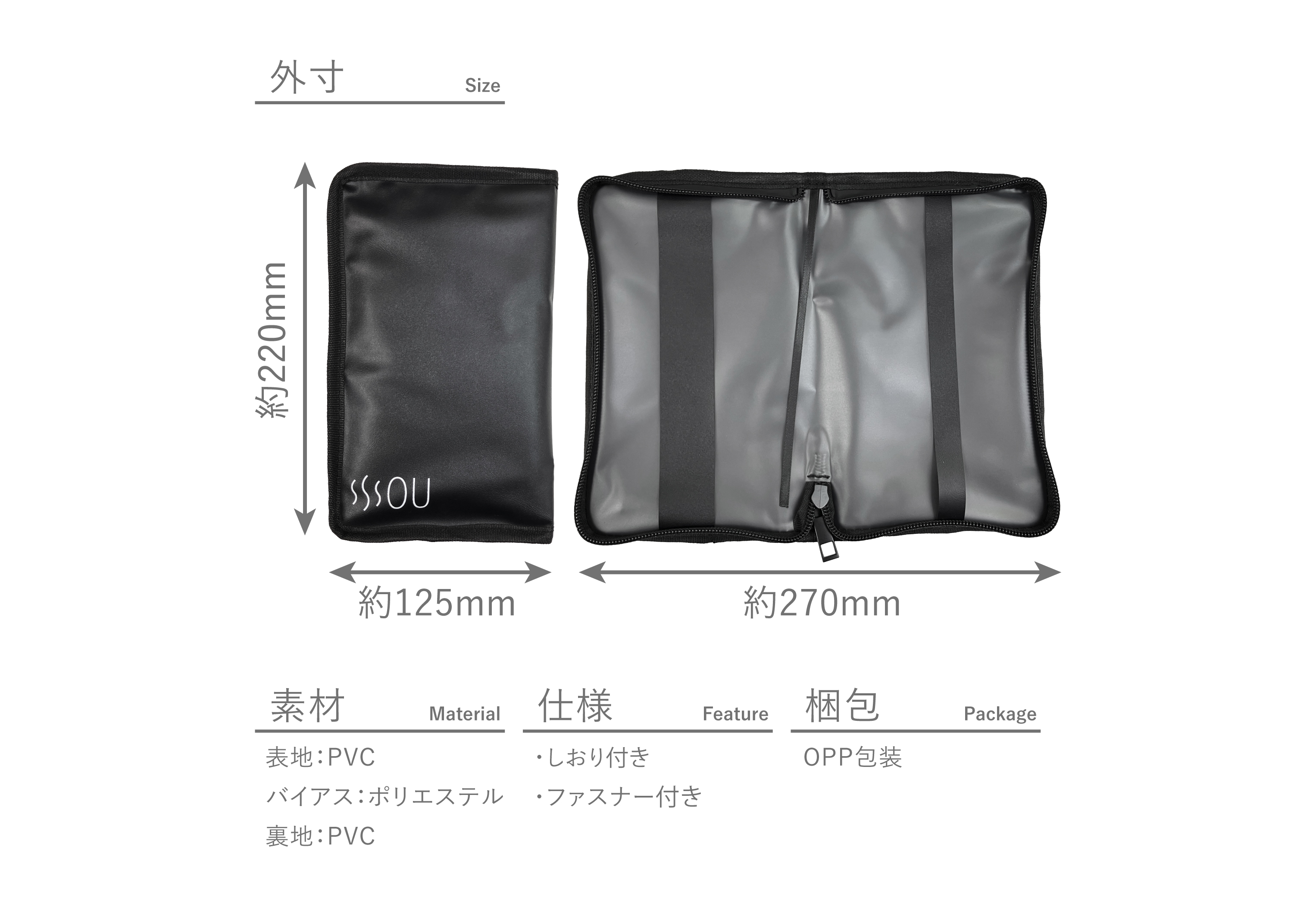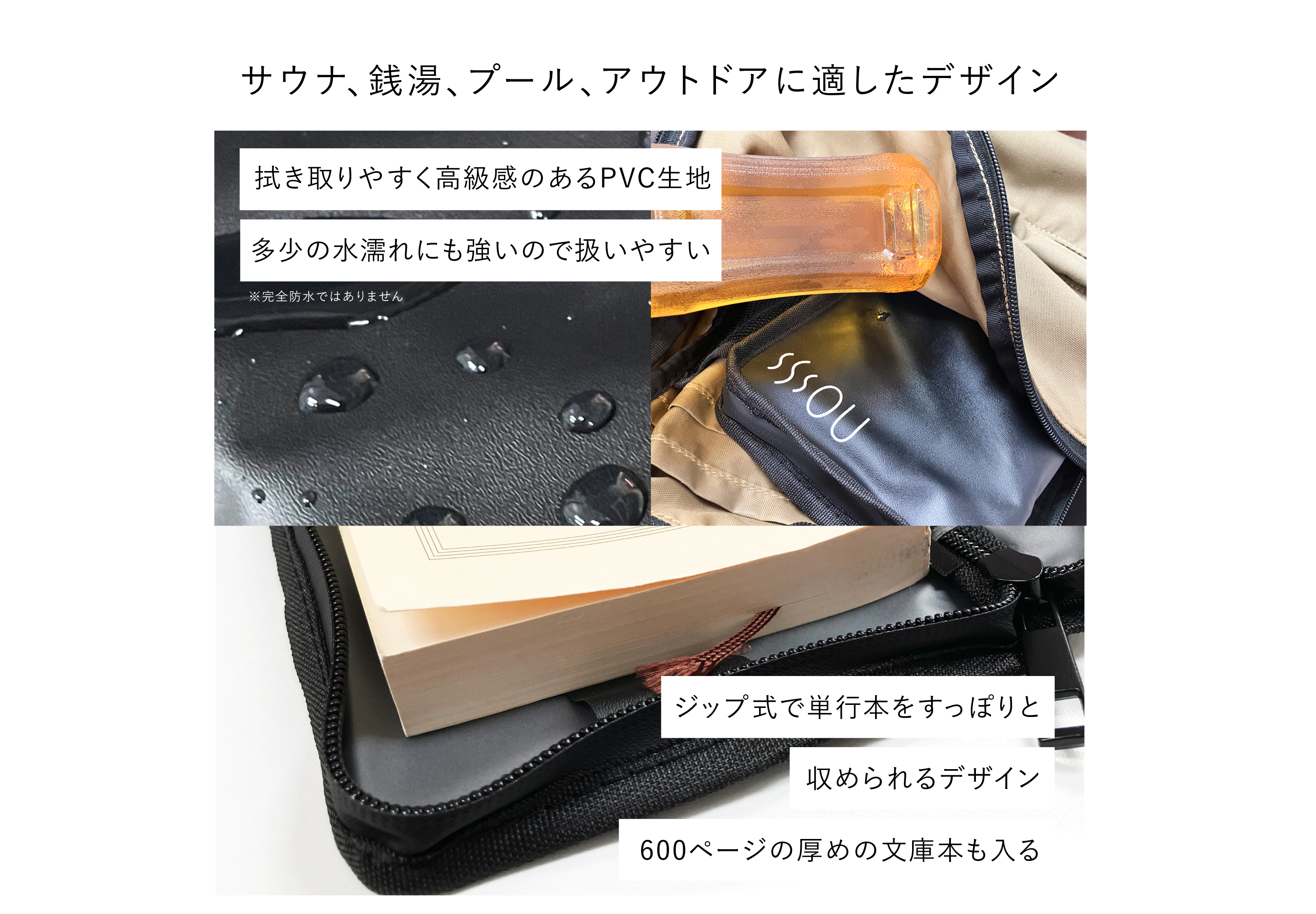 PVC・ポリエステル素材の 防水ブックポーチ